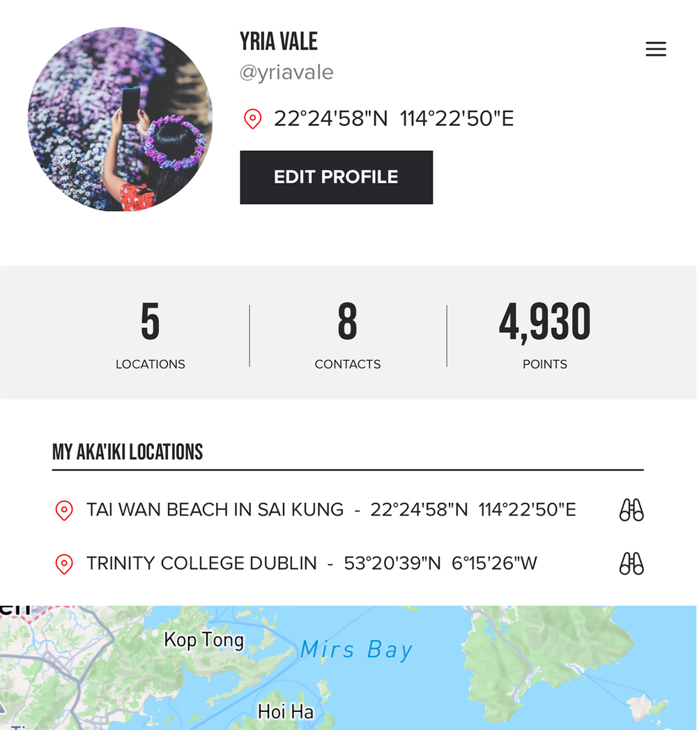 At the very centre of the app, an easy-to-navigate interactive world map features all AKA'IKIs and other locations that our members chose to share with the community.